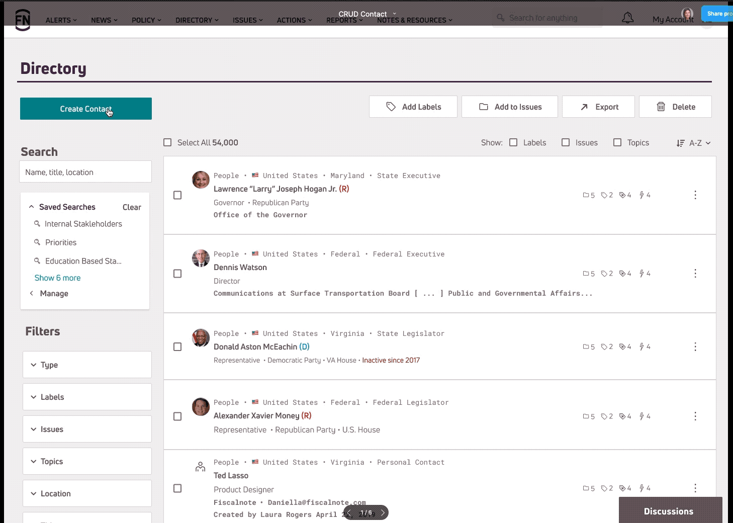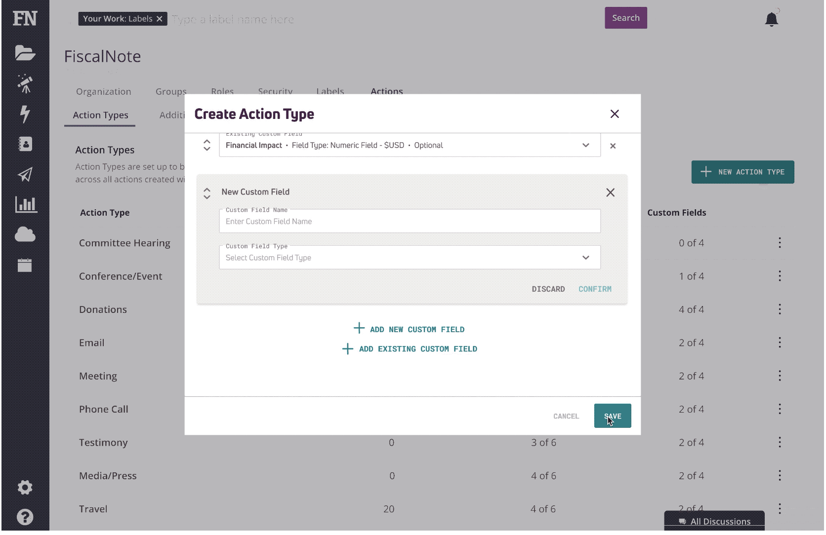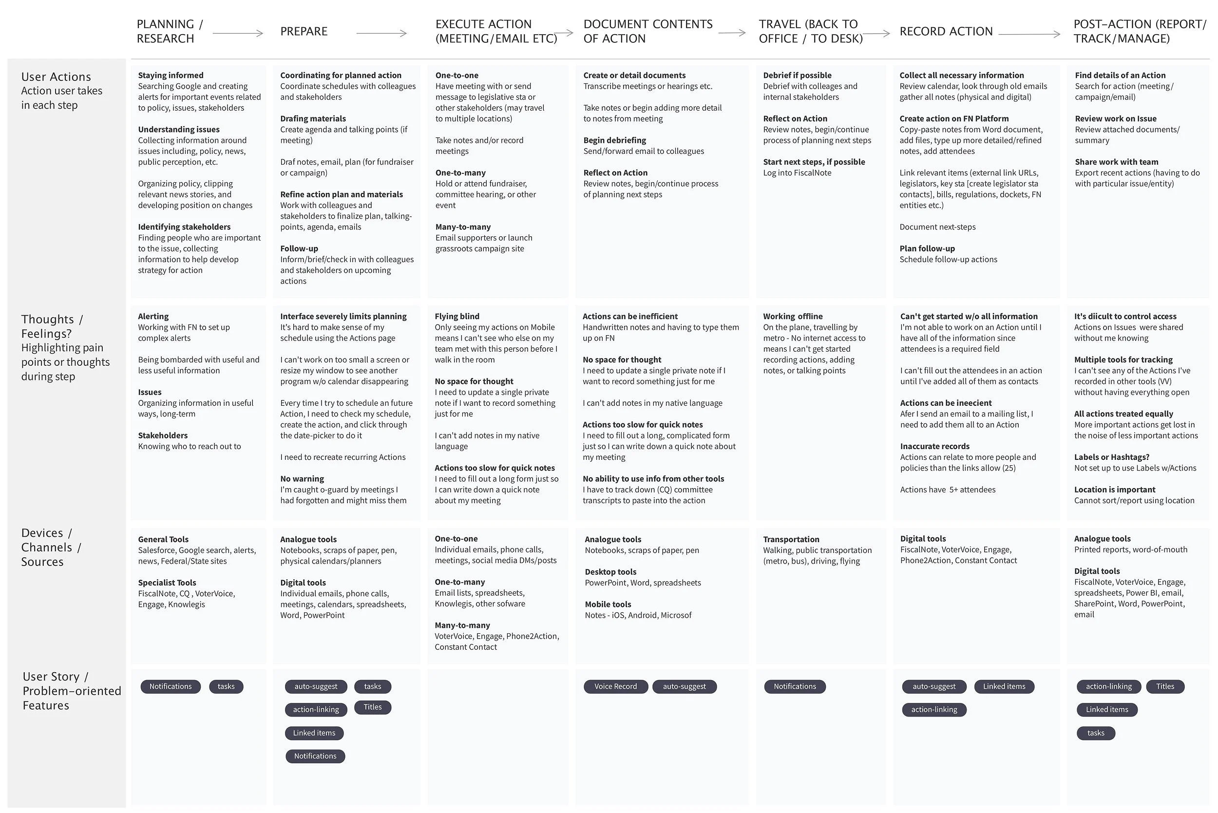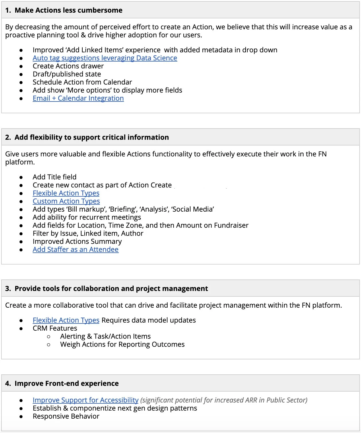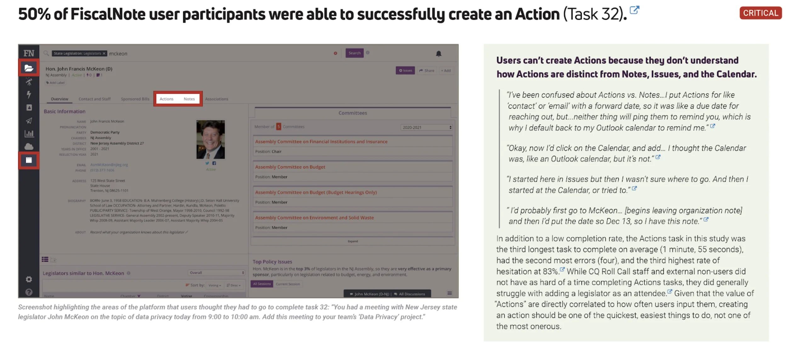 TLDR: Rebuilt the Actions workflow into the backbone of the FiscalNote platform, connecting it seamlessly with stakeholder management, data profiles, and reporting. Projected 47% ARR growth.