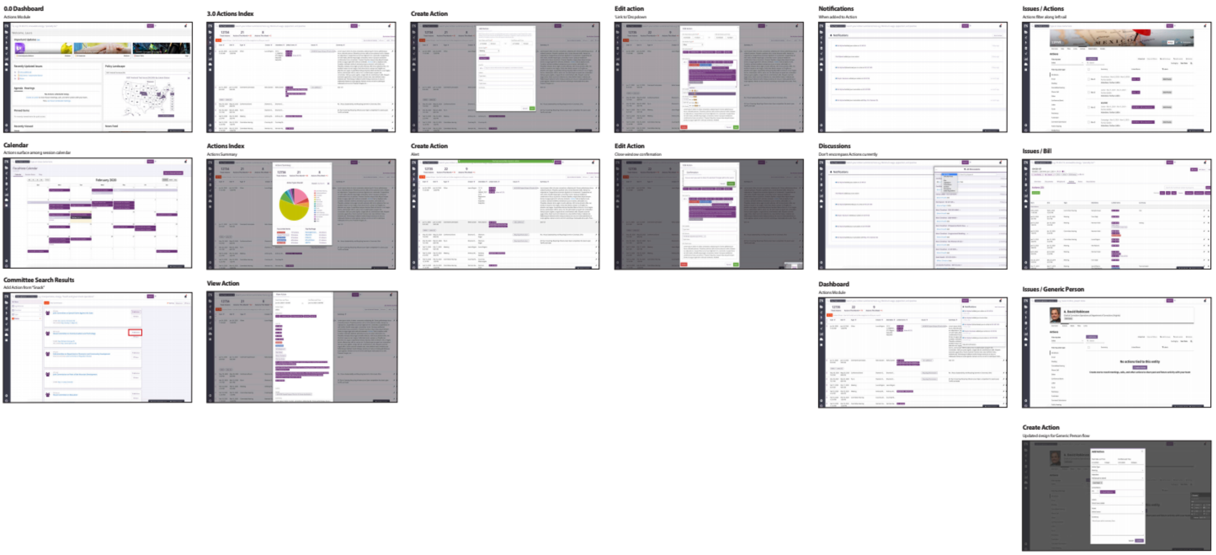 Rebuild explicitly tied together reporting and stakeholder management, making Actions the central hub. Instead of bouncing between disconnected modules, users had a single, integrated flow that supported the entire lifecycle of policy work.